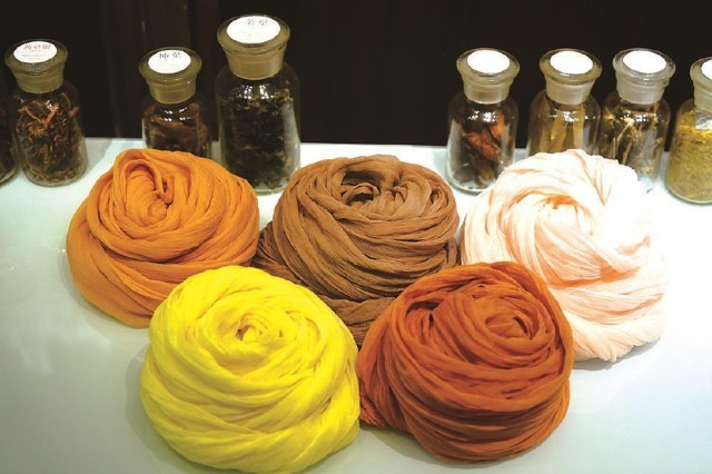 而與大多數(shù)傳統(tǒng)色彩研究者不同的是,曾啟雄極為重視實(shí)驗(yàn)考證。作為一位技藝精湛的染色家,其論著里介紹傳統(tǒng)染色的文本內(nèi)容及圖片,都是他親歷親為、反復(fù)實(shí)驗(yàn)后的成果,這也是該書最為精彩之處。在染色實(shí)驗(yàn)過程中,除了復(fù)原了傳統(tǒng)顏色的本來面貌外,作者還做出如下貢獻(xiàn):首先,通過大量實(shí)驗(yàn)印證了古籍記載的真?zhèn)?,并糾正了其中一些不實(shí)之處。比如,他通過在柘木里添加明礬、高溫染色后的結(jié)果,顛覆了以往認(rèn)為唐代帝王穿用的“柘黃”袍服是暗淡赭黃色的普遍認(rèn)知,印證其應(yīng)為類似明清時(shí)代帝王使用的明黃色。其次,使用不少篇幅介紹了不同的染料、媒介物等因素對于染色效果等的制約作用。以石榴皮作為染材為例,當(dāng)它與不同媒染劑,如明礬、鐵等進(jìn)行染色時(shí),則會形成由黃色到黑褐色的不同顏色。即使采用相同的染法,因棉麻絲綢等介質(zhì)迥異,也會染出不同顏色等。最后,該書對于各種染料特點(diǎn)、工藝程序、顏色效果等的表述,較其他相關(guān)論著也更加纖悉無遺和引人入勝,如關(guān)于紫膠蟲的染色工序的詳盡介紹等,讓讀者有一種身臨其境、意欲參與的感受。