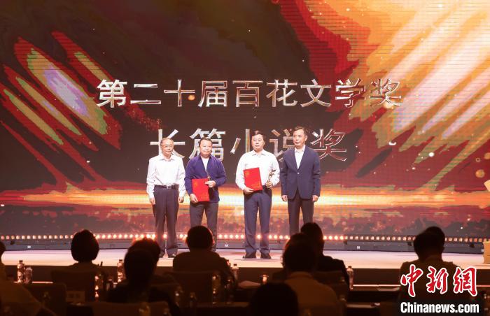 9月19日,第二十屆百花文學獎頒獎典禮在天津舉辦?!D為長篇小說獎頒獎儀式。 中新社記者 王在御 攝