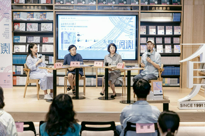 分享會上,閱讀公益組織“愛閱公益基金會”的李文、兒童有聲書品牌“老墨家族”的“墨叔叔”、學(xué)習(xí)困難關(guān)愛協(xié)會“學(xué)愛會”許倩、讀困家長社群“飛米力”(本書翻譯團(tuán)隊)主理人鄭楓,四位嘉賓,帶著各自不同的成長和行業(yè)經(jīng)歷背景,圍繞“不一樣的孩子,不一樣的閱讀”的主題展開交流,從不同的角度表達(dá)了他們對于閱讀障礙的關(guān)切。