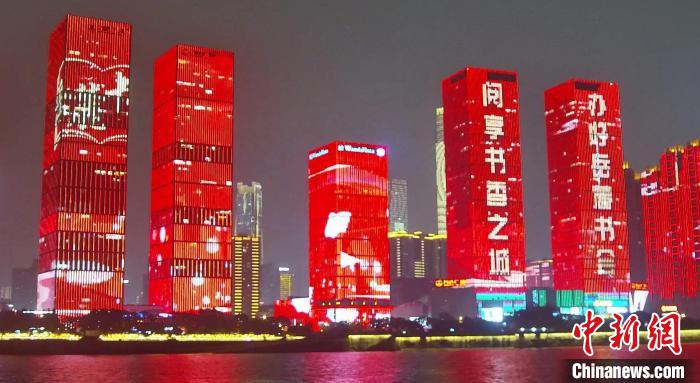 長沙湘江兩岸同步上演的岳麓書會主題燈光秀。主辦方供圖