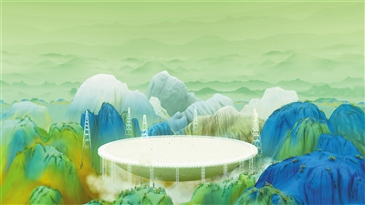 數(shù)字技術(shù)的賦能,進(jìn)一步打開青綠山水創(chuàng)作空間。在黨的二十大勝利召開之際,人民日報社新媒體中心在全網(wǎng)上線創(chuàng)意動畫視頻《新千里江山圖》,數(shù)字技術(shù)與中華優(yōu)秀傳統(tǒng)文化元素相結(jié)合,輔以青綠色彩,鋪展一幅新時代的“千里江山圖”,生動講述中國故事。還有一些創(chuàng)作者以“藝術(shù)+科技”思維,用數(shù)字藝術(shù)重新演繹青綠山水之美。比如藝術(shù)家靳軍的個人展覽“數(shù)境等觀”,便呈現(xiàn)了他近年來以數(shù)字藝術(shù)“轉(zhuǎn)譯”傳統(tǒng)圖像和意境的多組作品。光影流轉(zhuǎn)中,觀眾得以沉浸式體驗青綠之美。