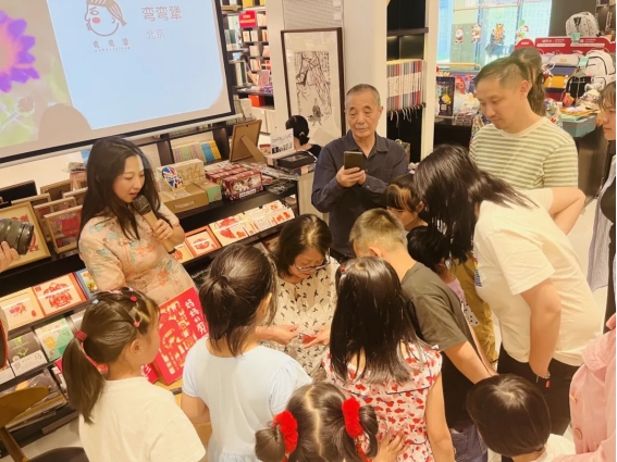 在作者和主持人瑩瑩老師的幫助下,孩子們發(fā)揮奇思妙想,用靈巧的小手將自己喜歡的事物,剪成一個個充滿童趣、獨一無二的作品,展現(xiàn)了一個個精彩紛呈的童話世界。劉雪純現(xiàn)場剪了花朵、小貓等剪紙,送給孩子們作為禮物。