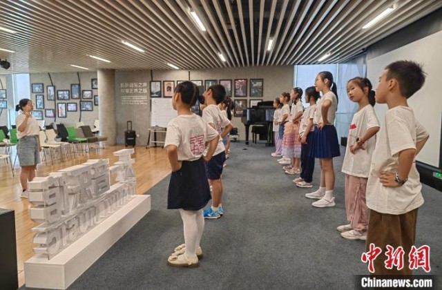寧波圖書館的“天一童藝”公益項目現(xiàn)場,孩子們跟著老師學唱由《千字文》改編的歌曲?!≈行戮W(wǎng)記者 應妮 攝