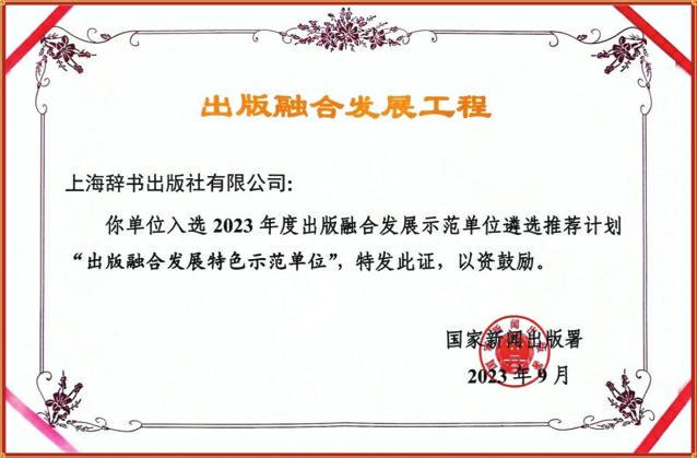 上海辭書出版社入選2023年度出版融合發(fā)展示范單位遴選推薦計劃“出版融合發(fā)展特色示范單位”