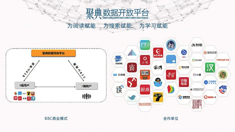 以我為主,推動產(chǎn)業(yè)鏈和生態(tài)圈的協(xié)同共進。與以往數(shù)字出版平臺大都采用B2B、B2C等商業(yè)模式不同,聚典平臺采取的是BBC運營模式,即在商務流上是B2B模式,而在數(shù)據(jù)流上是B2C模式。該模式很好地解決了用戶在數(shù)字閱讀過程中的痛點,同時又很好地平衡了各方利益,C端用戶無需付費便可享受聚典平臺的優(yōu)質(zhì)內(nèi)容資源服務,B端客戶向平臺付費以獲得增值服務,在增加其產(chǎn)品用戶黏性的同時,也減輕了自身的數(shù)據(jù)加工和技術(shù)開發(fā)工作。聚典平臺不僅在總體上創(chuàng)造出增量價值,更通過制度的設計很好地平衡了增量價值的合理分配,讓各方都分享到其中的一部分,從而調(diào)動了各方的參與性和積極性。