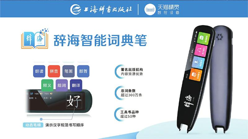 為了更好地適應用戶在紙質(zhì)閱讀過程中的快速查檢需求,辭書社經(jīng)過數(shù)年設計研發(fā),于2022年9月推出辭海智能詞典筆。詞典筆充分依托聚典平臺積累的海量內(nèi)容資源,將1.6億字裝進一支詞典筆,內(nèi)置詞條達到了300余萬條,收錄了《辭?!罚ǖ谄甙妫┖汀洞筠o?!贰稘h語大詞典》《英漢大詞典》《世紀漢英大詞典》等國家級標志性工具書,整合《現(xiàn)代漢語大詞典》《現(xiàn)代漢語規(guī)范詞典》《中國成語大辭典》《同義詞、反義詞大詞典》等精品工具書,讓用戶每次都能夠查有所得。同時,詞典筆實現(xiàn)掃讀結(jié)果1秒呈現(xiàn),并融合數(shù)字智能技術(shù),集掃描查詢、語音助手、聽力練習、語音翻譯、口語測評、數(shù)碼錄音、生詞本、文本摘抄等八大功能于一體,實現(xiàn)一筆多用。
