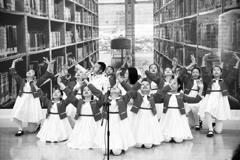 遼寧省開(kāi)原市民主教育集團(tuán)“納蘭合唱團(tuán)”在發(fā)布會(huì)現(xiàn)場(chǎng)表演節(jié)目《老師》,以表達(dá)對(duì)老師的熱愛(ài)。 遼海出版社 供圖