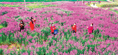 安徽六安市民在做好防護(hù)的基礎(chǔ)上,自駕車輛,來到獨(dú)山鎮(zhèn)抹茶特色小鎮(zhèn),觀花賞景。 陳力 攝
