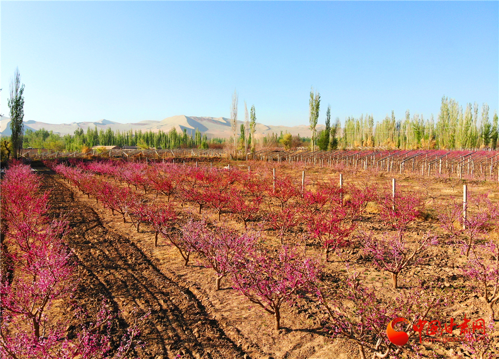 近日,位于鳴沙山下的甘肅省敦煌市七里鎮(zhèn)的5000余畝桃花競相綻放,芬芳爭艷,分外迷人。目前,桃產(chǎn)業(yè)已成為該鎮(zhèn)富民強(qiáng)鎮(zhèn)的主導(dǎo)產(chǎn)業(yè)之一。