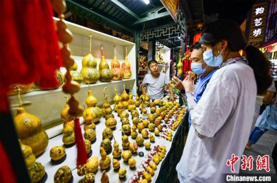圖為游客購買刻葫蘆工藝品。 王斌銀 攝