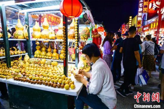 7月29日,游客在敦煌旅游工藝品一條街上漫步,體驗濃郁的民俗風(fēng)情和敦煌文化?!⊥醣筱y 攝