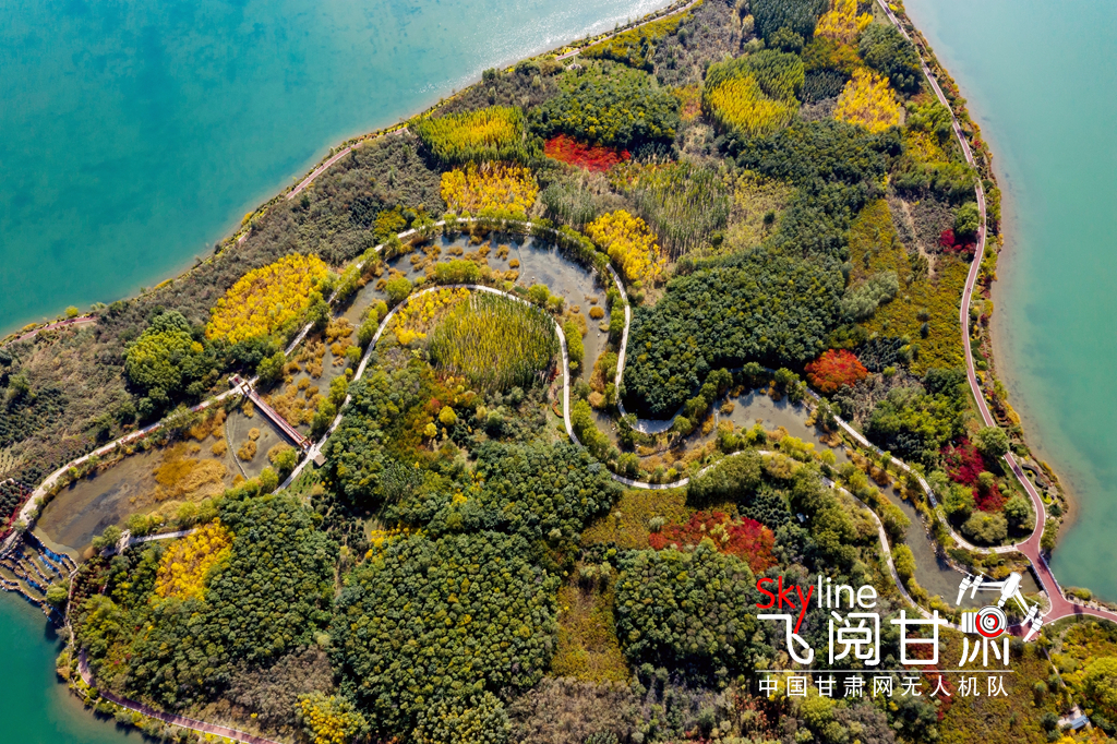 10月11日,航拍甘肅省張掖市蘆水灣旅游度假區(qū),五彩斑斕,美不勝收。(無人機(jī)照片)