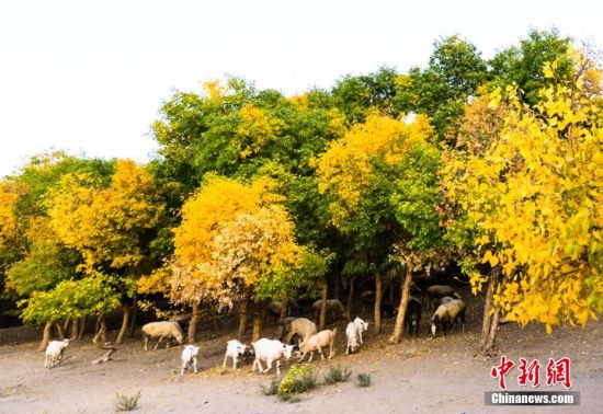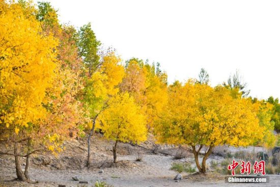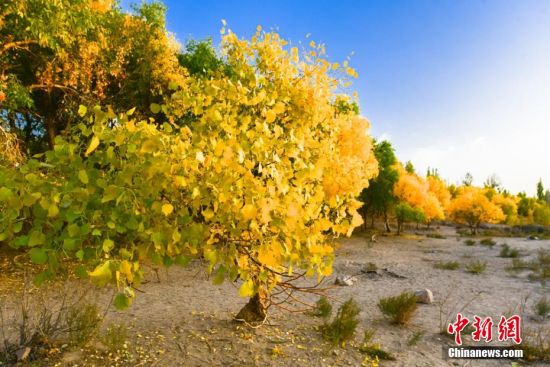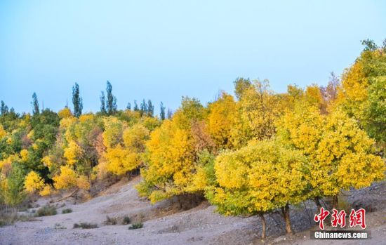 圖為胡楊秋色吸引不少游客和敦煌市民前來賞秋。 王斌銀 攝