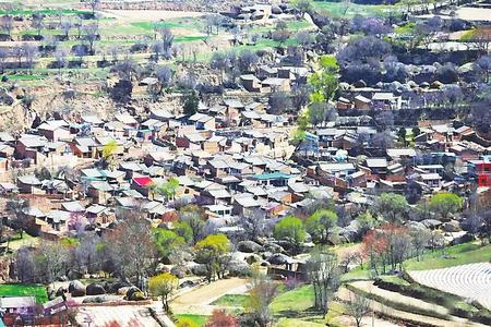 村內(nèi)莊院和山頂栽植有大片桃林,每逢陽春季節(jié),花滿枝頭,景色迷人。漫步其間,微風拂面,鳥語花香,藍天白云,呼吸著清新鄉(xiāng)野空氣,時間仿佛都在此停頓。