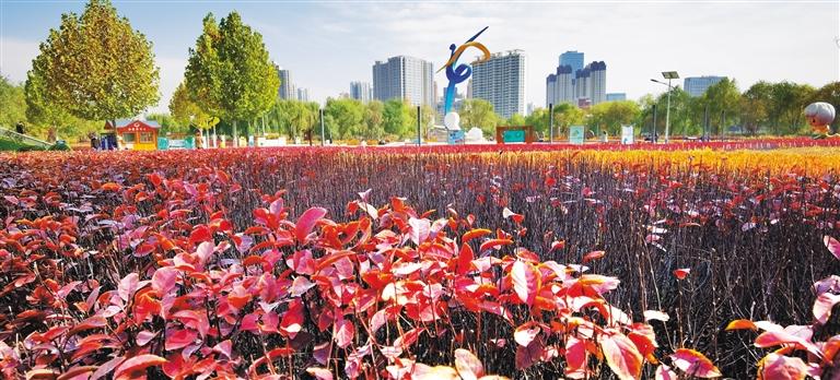 在暖陽(yáng)的照射下,色彩斑斕的樹(shù)葉把這座西北重鎮(zhèn)裝點(diǎn)得多彩絢麗、如詩(shī)如畫(huà)。人們?cè)诠珗@、在街頭巷尾,享受著無(wú)邊的秋色。
