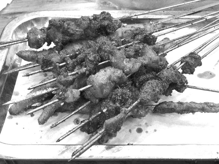 一般到下午四五點(diǎn)鐘就賣完了,把生意留給對(duì)面的烤肉??救鈱儆诟煽镜牧髋桑恳淮际侨菀环?,很香。