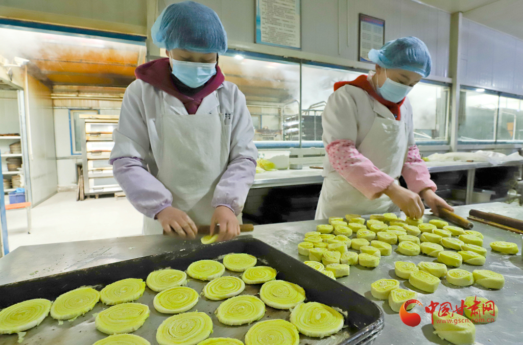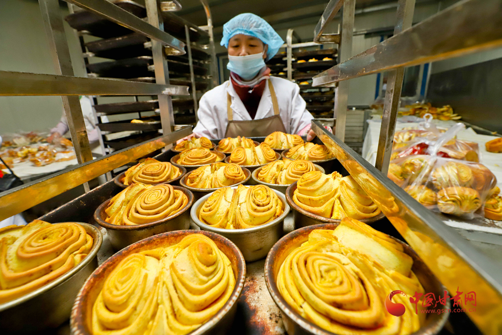 1月6日,甘肅民樂(lè)縣隴上鄉(xiāng)村農(nóng)業(yè)科技公司鄉(xiāng)村饃饃加工車(chē)間里員工正在精心制作“祥龍花饃饃”。