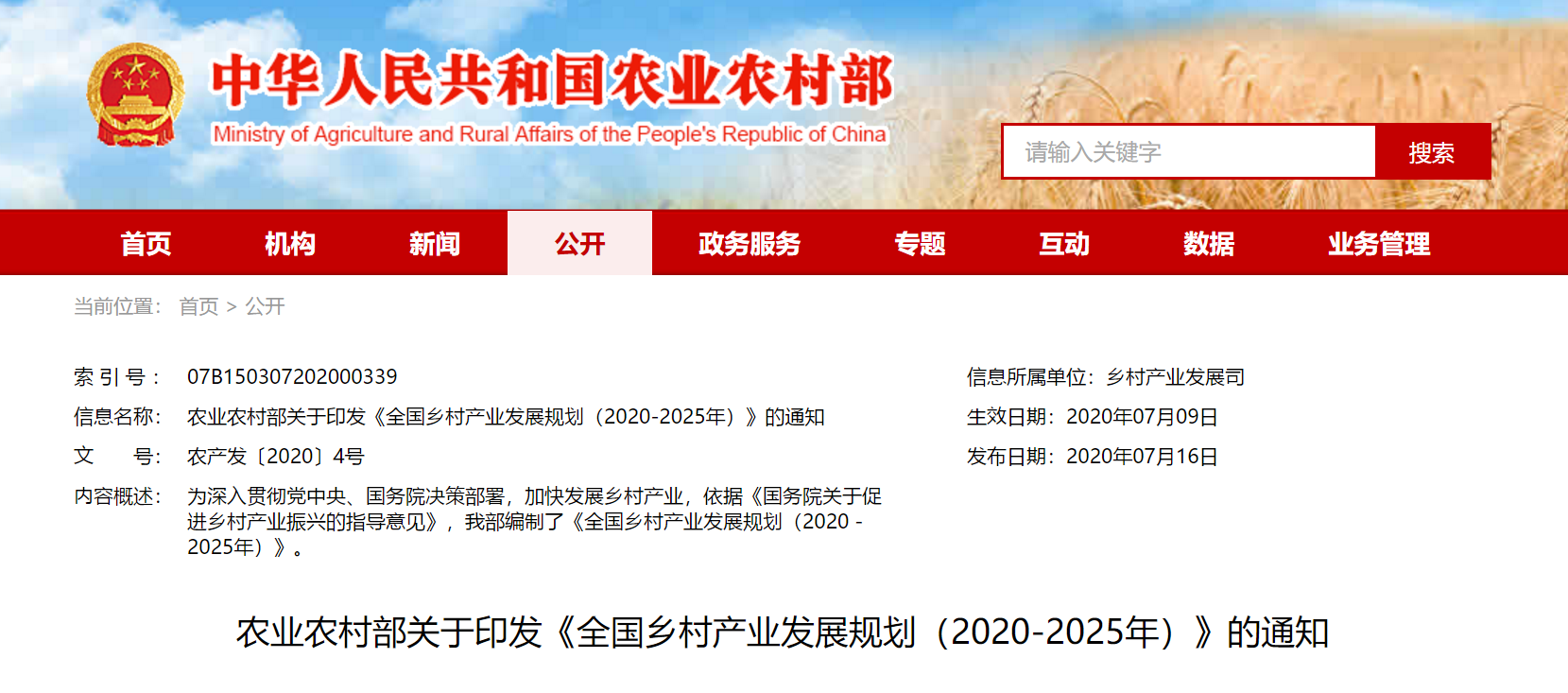 去年7月9日,農村農業(yè)部正式下發(fā)《全國鄉(xiāng)村產業(yè)發(fā)展規(guī)劃(2020-2025年)》(以下簡稱《規(guī)劃》?!兑?guī)劃》稱,近年來,農村創(chuàng)新創(chuàng)業(yè)環(huán)境不斷改善,新產業(yè)新業(yè)態(tài)大量涌現(xiàn),鄉(xiāng)村產業(yè)發(fā)展取得了積極成效。但存在產業(yè)鏈條較短、融合層次較淺、要素活力不足等問題,亟待加強引導、加快發(fā)展。根據《國務院關于促進鄉(xiāng)村產業(yè)振興的指導意見》要求,為加快發(fā)展以二三產業(yè)為重點的鄉(xiāng)村產業(yè),制定本規(guī)劃。