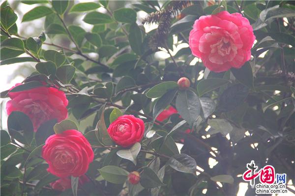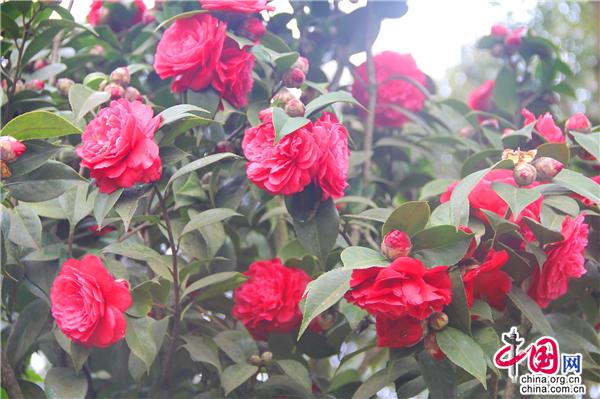 一輪艷陽(yáng)照四方,一席春風(fēng)綠千山。山茶花是中國(guó)傳統(tǒng)名花,也是世界名花之一。2月21日,朋友相約,從縣城出發(fā),約8公里就進(jìn)入九龍生態(tài)園,姿態(tài)各異的山茶花已進(jìn)入盛花期,樹(shù)姿虬勁優(yōu)美,綠葉四季不凋,一朵一朵的茶花大如牡丹,燦如云霞,風(fēng)姿綽約,耀眼生輝!植株形姿優(yōu)美,葉濃綠而光澤,花形艷麗繽紛,美艷了。有的鮮紅如火、有的嬌羞染粉、有的晶瑩潔白……滿園茶花勝景。不經(jīng)意間清風(fēng)吹過(guò),暗香徐來(lái),朵朵花兒隨風(fēng)舞。陽(yáng)光穿透葉子的縫隙,落在花間小道上,花香彌漫整個(gè)鼻腔,放低自己,品味花香,眼里有花、心里有花,人生就會(huì)像花一樣美麗。