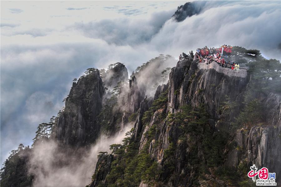 【點(diǎn)睛】云海隨著氣流漫過天都峰與蓮花峰時(shí)瘋狂的傾瀉而下,浩浩蕩蕩直奔東方注入大海,成就浩瀚的海洋。