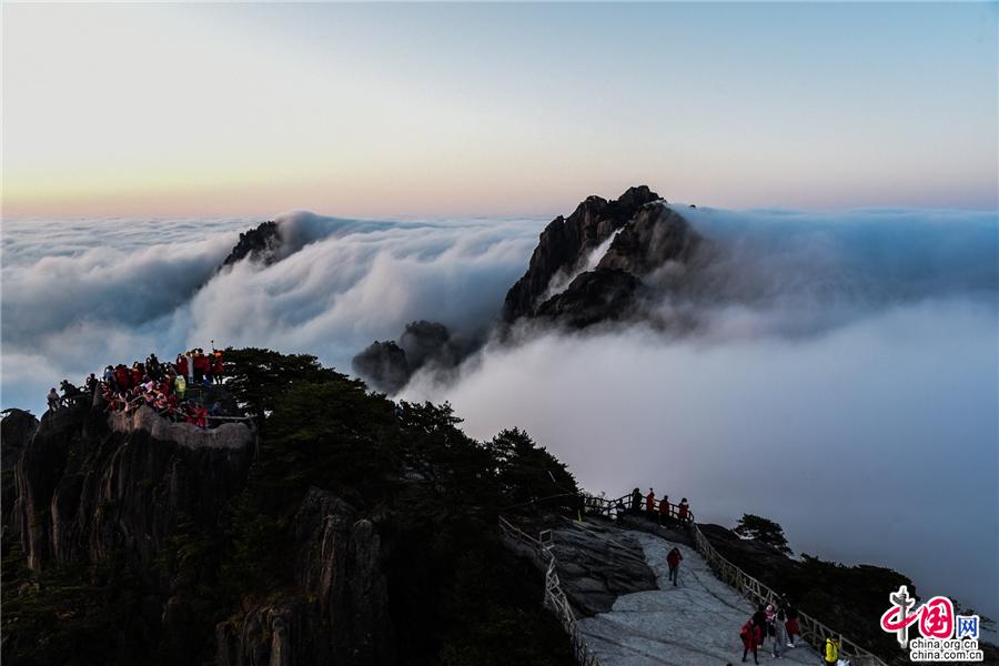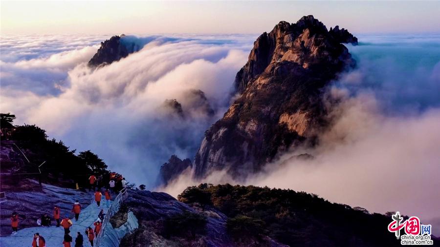 原標(biāo)題:安徽黃山雨后云海日出:自然饋贈 壯麗浩蕩