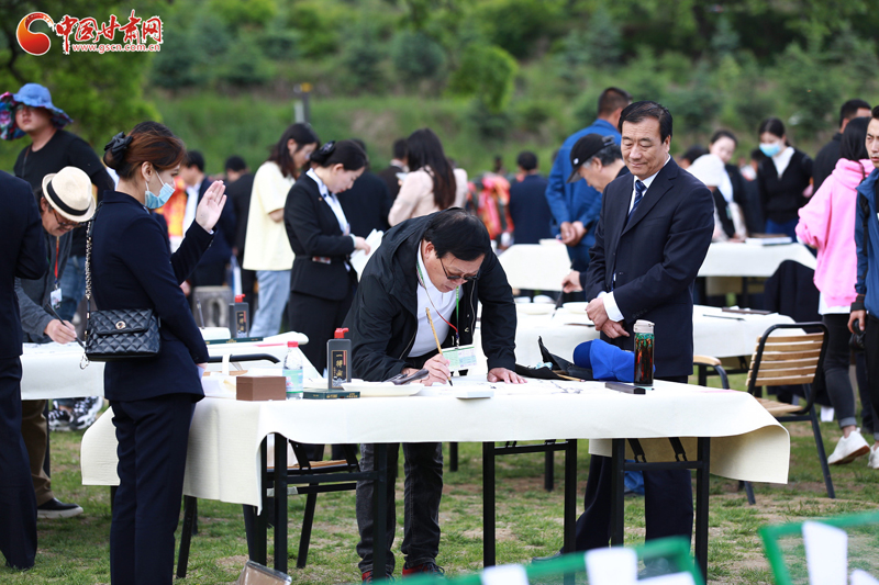作為平?jīng)鲠轻嘉幕糜喂?jié)的一項重要活動,來自全國各地共計30余名書畫家在參加完書畫名家精品展開幕式后,深入華夏古槐王景區(qū)采風(fēng)并現(xiàn)場揮毫潑墨,用水墨丹青為崇信“留影”,用詩情畫意細(xì)述崇信故事?;顒蝇F(xiàn)場氣氛熱烈,書畫家們筆走龍蛇、各展所長,創(chuàng)作了多幅描繪崇信風(fēng)貌的書畫作品。他們或顏筋柳骨、筆力遒勁,或妙筆丹青、氣韻生動,贏得了現(xiàn)場嘉賓嘖嘖稱贊。