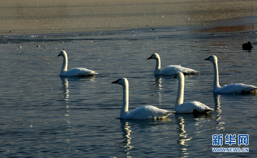 冬日清晨的甘肅省張掖國(guó)家濕地公園里碧波蕩漾,成群的白天鵝、黑天鵝等鳥(niǎo)類(lèi)聚在一起游弋嬉戲,歡騰跳躍,成為一道亮麗的風(fēng)景線,吸引眾多游客觀賞拍照。新華網(wǎng)發(fā)(陳禮 攝)