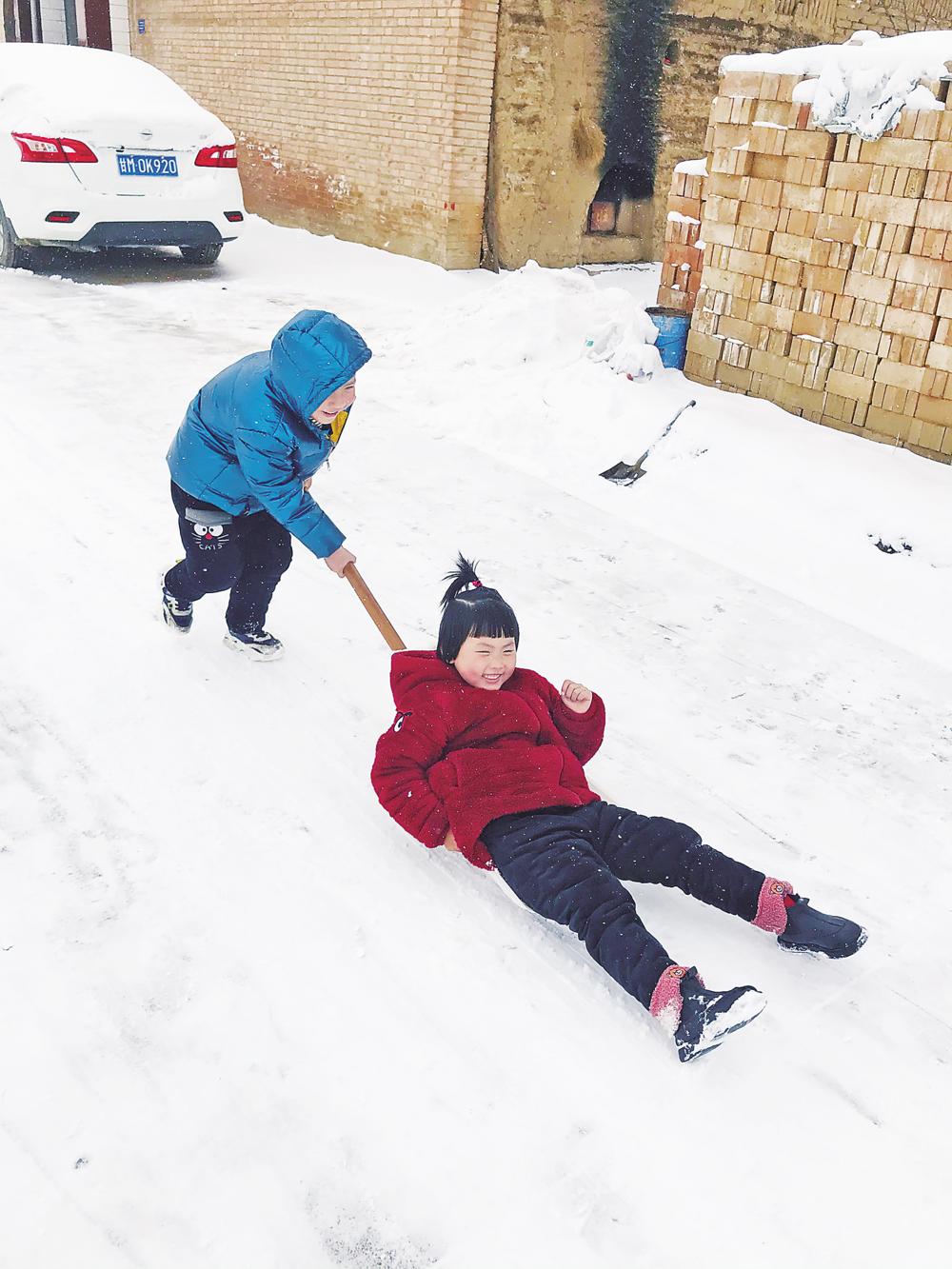 雪中嬉戲 本報記者 張寧寧 攝