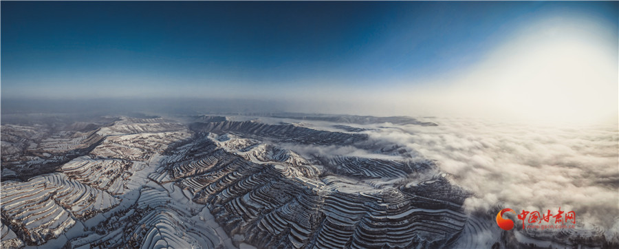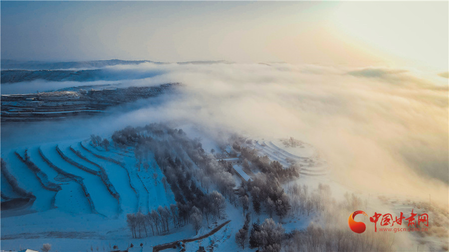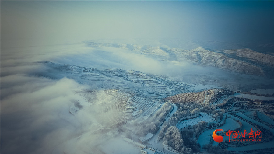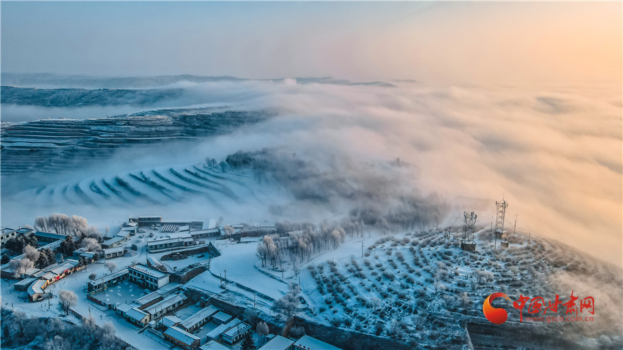 【隴拍客】蘭州榆中:穿越云海看梯田 雪后家園似仙境