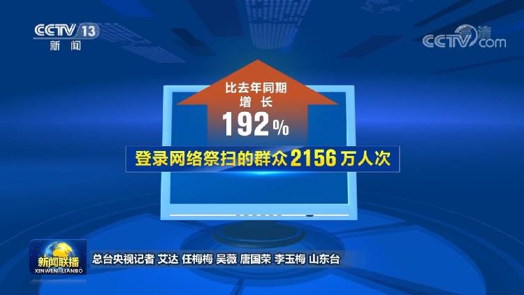 央視網(wǎng)消息(新聞聯(lián)播):今年清明節(jié)假期,我國旅游市場供給豐富、安全形勢總體平穩(wěn),網(wǎng)絡(luò)祭掃人次明顯增加。