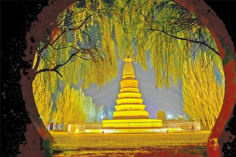 白馬塔景區(qū)夜景。
