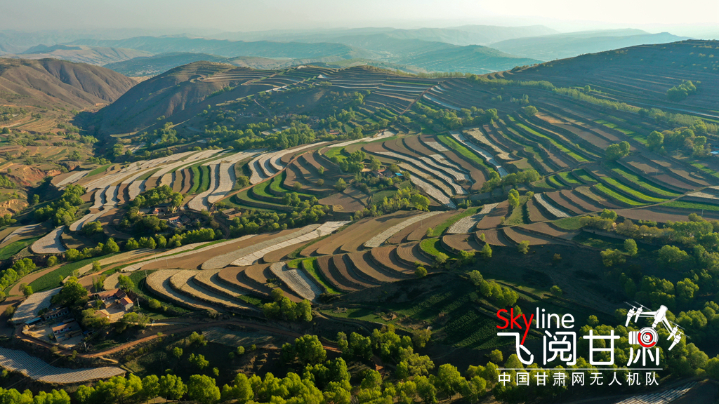 初夏時(shí)節(jié),一場(chǎng)雨后的定西市安定區(qū)石泉鄉(xiāng)3000畝標(biāo)準(zhǔn)化農(nóng)田和5萬(wàn)畝設(shè)施梯田,青山環(huán)抱、線(xiàn)條分明,鄉(xiāng)村點(diǎn)綴其間,在不同的光線(xiàn)下呈現(xiàn)出不同色彩,美如畫(huà)卷。