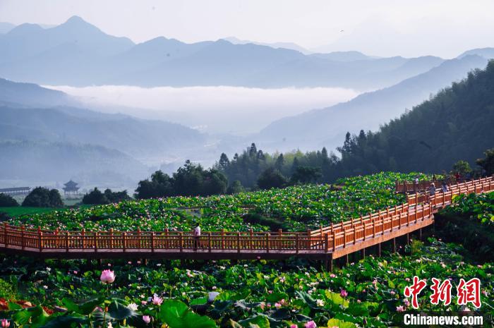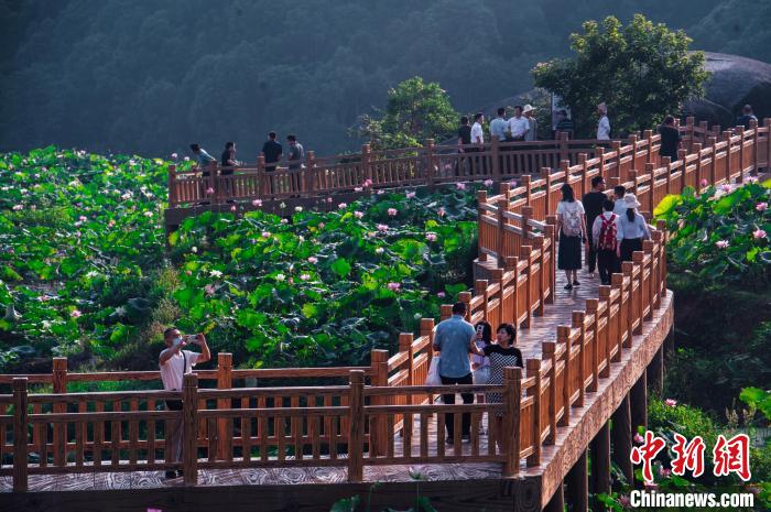 原標(biāo)題:福建建寧荷花怒放 吸引游客“為荷而來”
