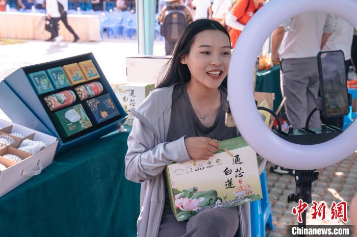 主播現(xiàn)場直播帶貨,銷售建蓮?!±钅宪?nbsp;攝