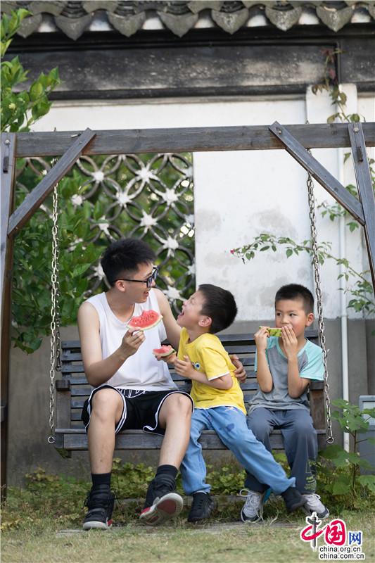 夏日遲遲至,古鎮(zhèn)緩緩行。坐一趟手搖船,穿行在23°的水巷,看陽光透過樹影落在水面上的斑駁,聽搖櫓聲聲撥動碧水的悠然,悄然經(jīng)過匆匆那年。赴一場紙箱王之約,穿梭在紙藝王國,吃一頓盈滿時光的紙上美食。坐上紙做的小火車放飛夢想,在紙箱王古郵局描繪出未來的藍圖。行走在貞豐文化街上,看貞豐十二坊的匠人匠心,觀水鄉(xiāng)周莊的人間煙火。走累了便去蘇繡藝舍感受蘇繡的獨特魅力,到爐韻沉香研習香道茶藝……一盞清茶一爐香,一衣帶水歸故鄉(xiāng)。