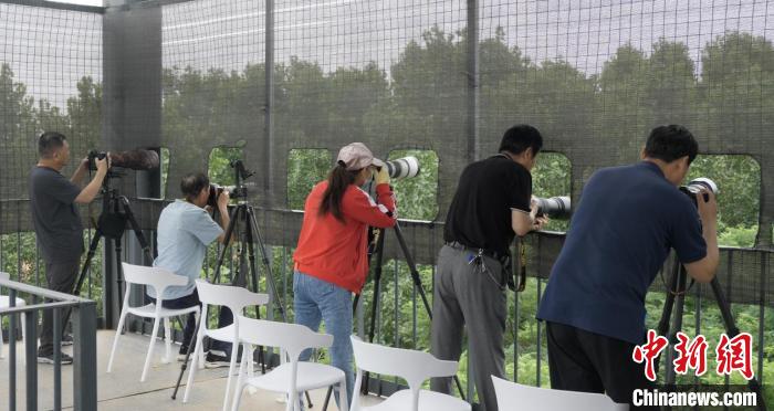 圖為鳥類攝影愛好者在觀鳥平臺(tái)上進(jìn)行拍攝。 桑秋華 攝