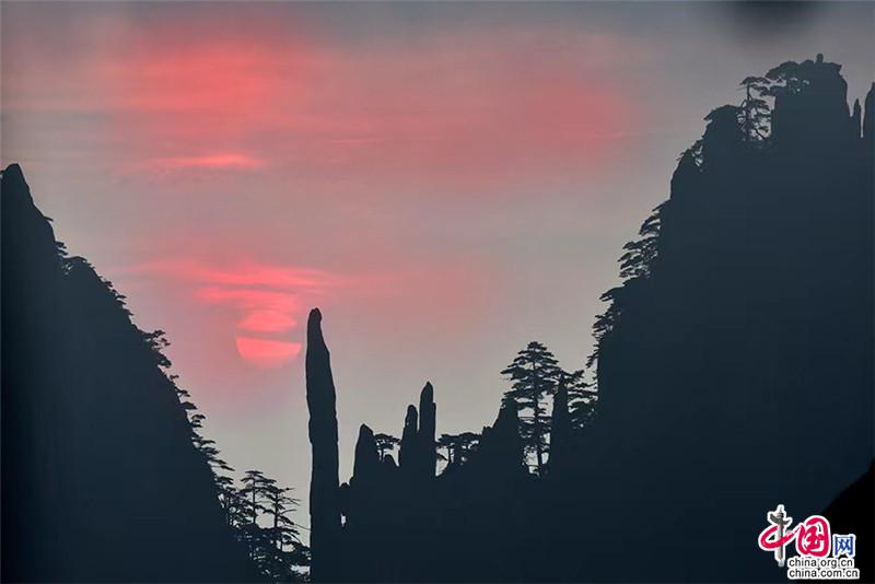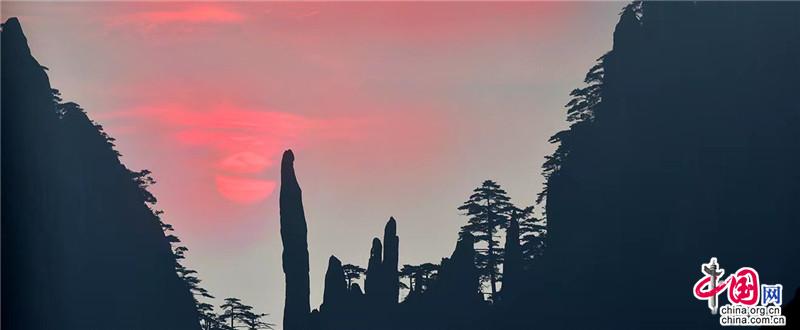 【點(diǎn)睛】在始信峰一處不起眼的觀景臺(tái),每年有那么幾天都會(huì)出現(xiàn)非常有寓意的奇景,當(dāng)?shù)厝朔Q為“鴻運(yùn)當(dāng)頭”。