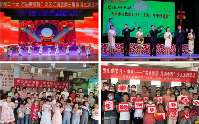 白銀市圖書館以閱讀分享、剪紙體驗、知識答題等形式,為各年齡段讀者打造專屬主題活動;武威書畫名家現(xiàn)場題字作畫,為游客送祝福;張掖“我們的中國夢·文化進萬家”中秋慰問演出走進社區(qū)街道,豐富群眾文化生活;天水舉辦“月是故鄉(xiāng)明”2022(壬寅)年中秋詩會,以詩會友歡度中秋。
