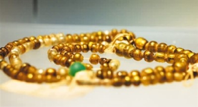 東漢夾金玻璃珠串。