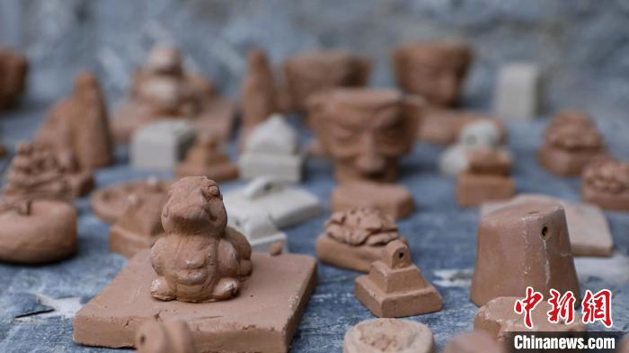 柴燒陶印的制作過(guò)程,結(jié)合了書(shū)法繪畫(huà)、手工雕塑等技藝。巨野縣委宣傳部供圖