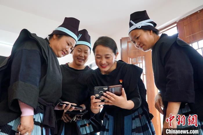 圖為白褲瑤居民正在通過手機(jī)了解信息。韋國(guó)政 攝