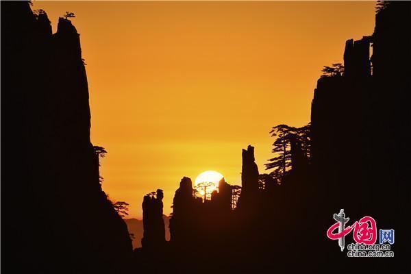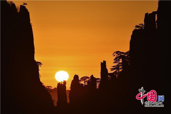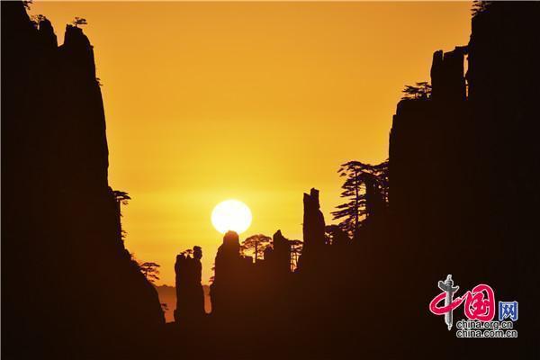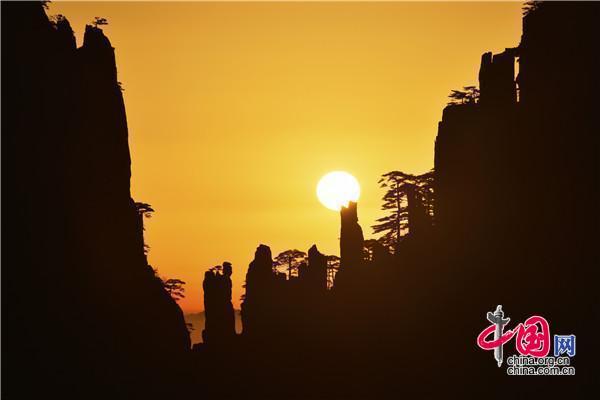 安徽黃山:日出巧石神奇變幻 畫面猶如仙境