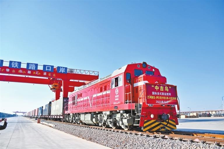 原標(biāo)題:蘭州新區(qū)2023年 首趟“中吉烏”公鐵聯(lián)運(yùn)國際班列發(fā)車