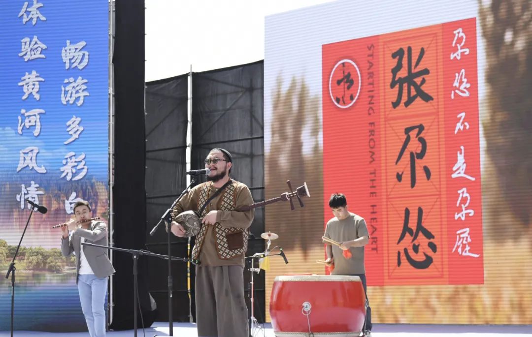 白銀市靖遠(yuǎn)籍民謠音樂人張尕慫和他的團(tuán)隊(duì)在旅游節(jié)上為觀眾演唱《沒有黃河我活不下》。多年來(lái),他始終堅(jiān)守初心,帶著作品向全國(guó)乃至全世界宣傳甘肅,宣傳家鄉(xiāng)白銀。喬麗霞 攝