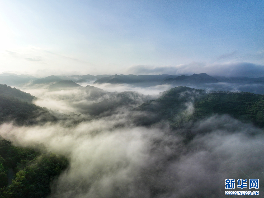 近日,甘肅省隴南市兩當縣上空云霧繚繞、煙波浩渺,縣城、山峰在霧海中若隱若現(xiàn),陽光從云霧間掠過,勾勒出一幅幅如夢如幻的美麗畫卷。新華網(wǎng)發(fā)(楊曉 攝)