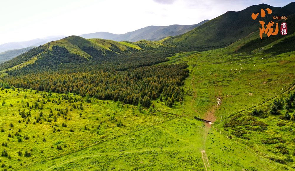 草原在山脈起伏中展開,南來(lái)北往的游客踏草慢行,感受獨(dú)特的草原夏日風(fēng)情。