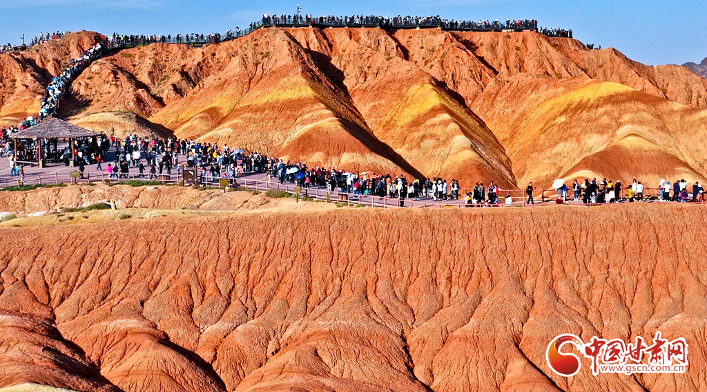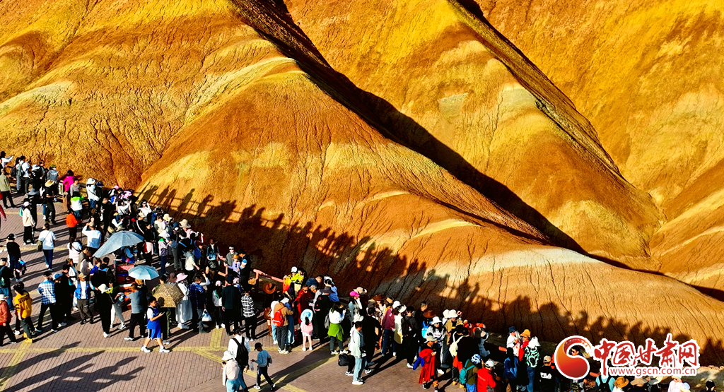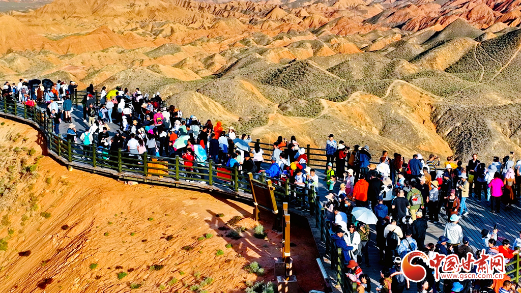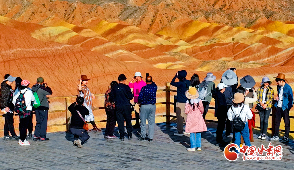 9月30日,甘肅張掖七彩丹霞景區(qū)內(nèi)人頭攢動(dòng),全國各地的游客紛至沓來,欣賞獨(dú)特的丹霞地貌,領(lǐng)略西北壯美景色。