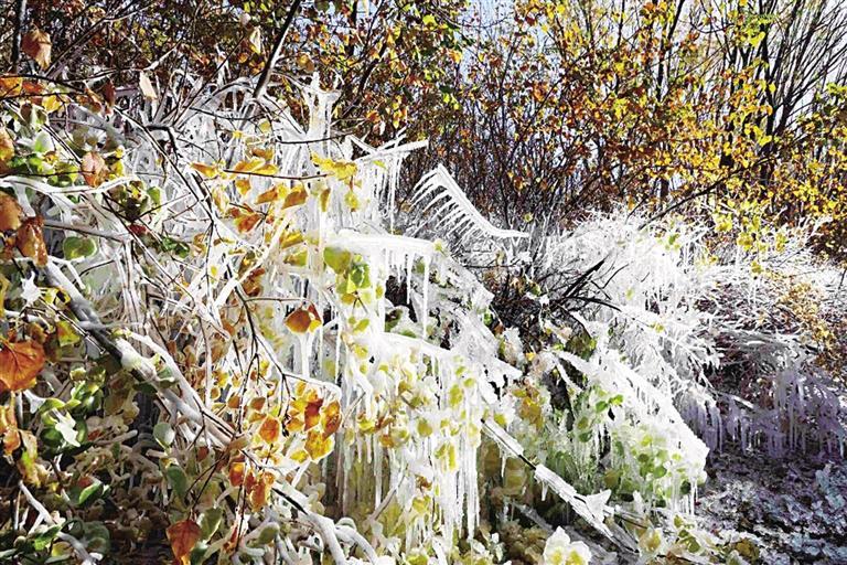 連日來,隨著我省河西地區(qū)氣溫驟降,張掖蘆水灣旅游度假區(qū)的各種植物上掛滿了晶瑩剔透的冰掛,玉樹瓊枝,美不勝收,成為深秋景區(qū)獨特的風景。