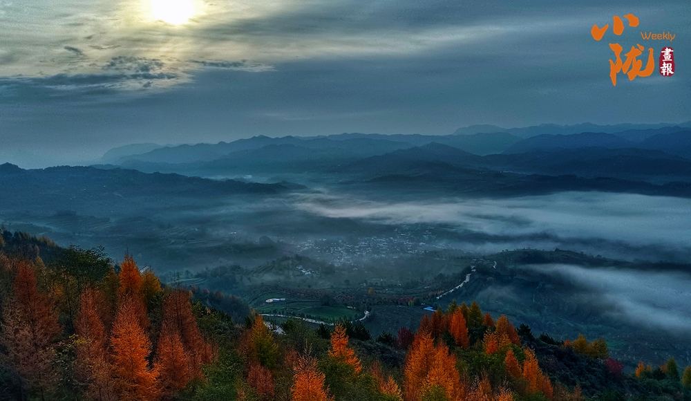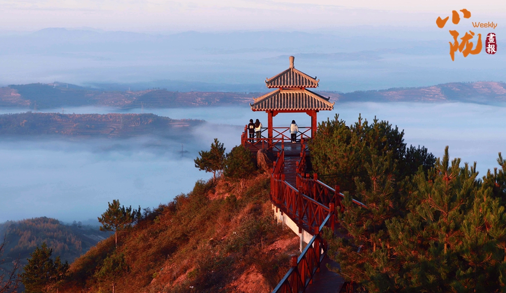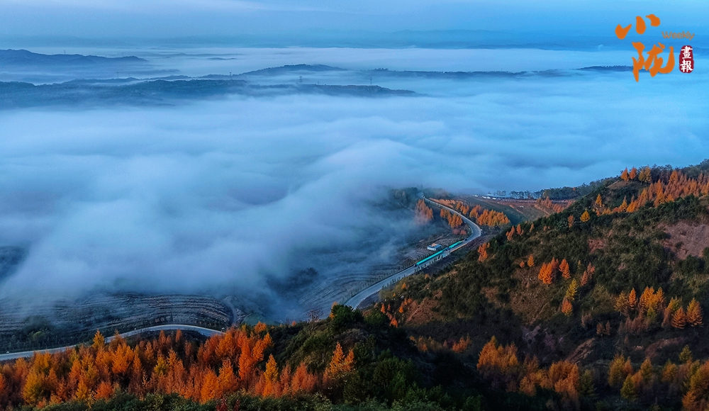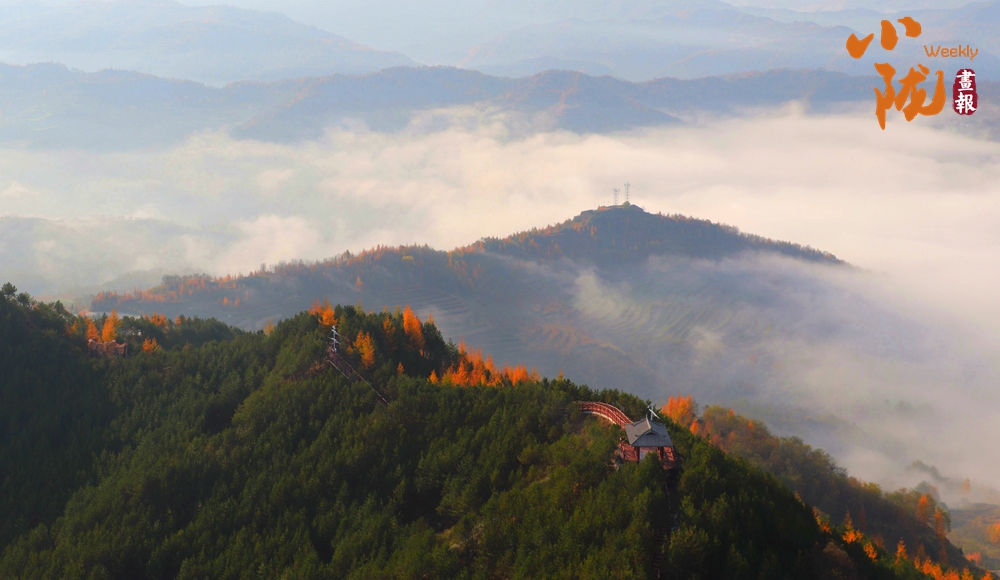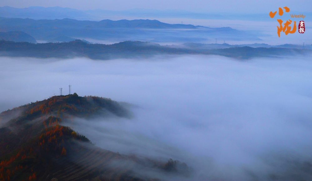 一場(chǎng)秋雨過(guò)后,境內(nèi)云華山呈現(xiàn)出一瀑萬(wàn)頃、白浪翻滾的云海景象。