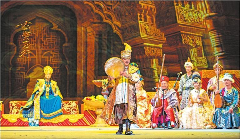 “音樂是一部劇的靈魂。這次新版的《玄奘西行》,用了西洋交響樂隊(duì)鋪底,民族樂器作為主奏,中西樂隊(duì)結(jié)合的方式既體現(xiàn)了宏大的氣勢(shì),又表達(dá)了中國(guó)人的思想和情感。”姜瑩說(shuō)。
